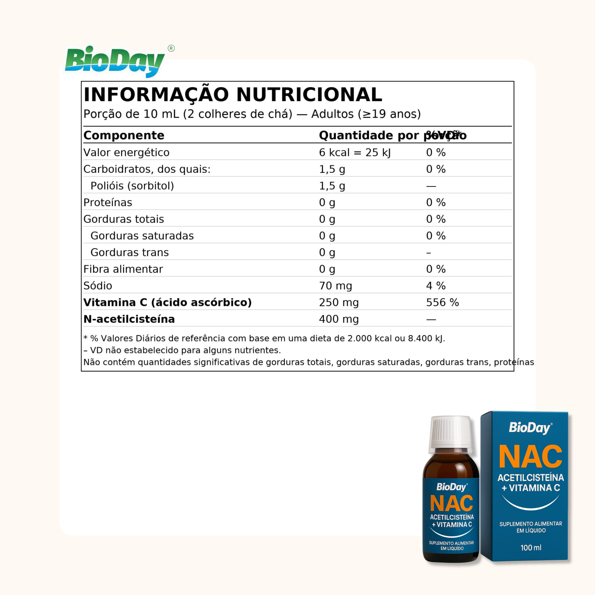 - NAC + Vitamina C (100 ml): combinação antioxidante e detox que fortalece a imunidade, protege o fígado e melhora a saúde respiratória. A NAC auxilia na eliminação de toxinas e no aumento da energia celular, enquanto a Vitamina C apoia a regeneração tecidual e combate os radicais livres.