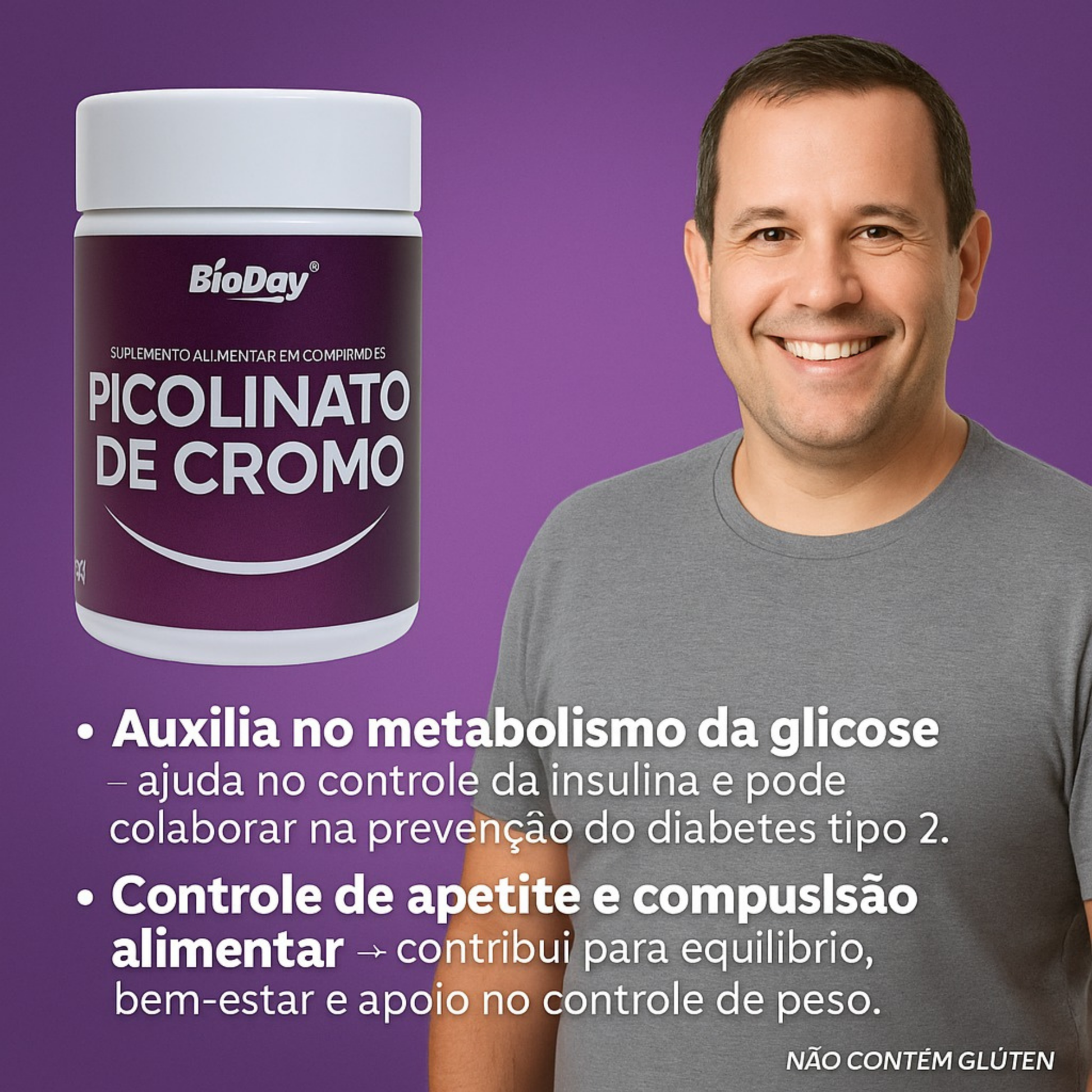 O Picolinato de Cromo é um suplemento mineral que auxilia na regulação da glicose no sangue e no controle do apetite, sendo um excelente aliado para quem busca melhorar o metabolismo e manter uma rotina mais equilibrada. O Cromo contribui para o bom funcionamento da insulina, ajudando a reduzir os desejos por doces e promovendo a queima de gordura corporal. Ideal para quem deseja controlar o peso, otimizar a energia diária e favorecer a saúde metabólica.